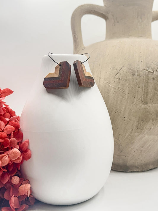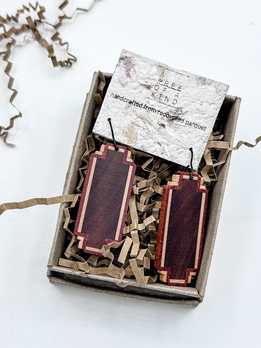 Art Deco Autumn Leaves Timber Dangle Earrings