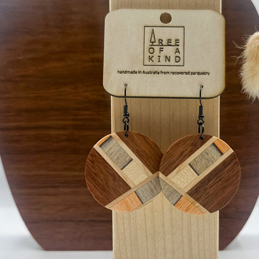 Abstract Circle Timber Dangle Earrings - Mixed Confetti PIxels