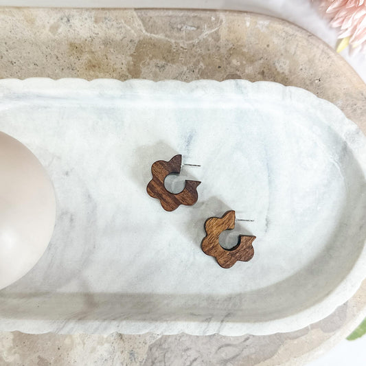 Bloom Burst Chunky Timber Hoops - Tassie Blackwood