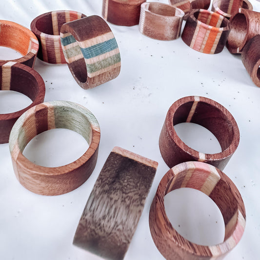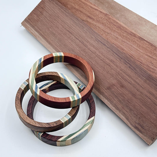 Tree Of A Kind's Bangles, Bracelets, Rings and Necklaces collection showcases the beauty of reclaimed timber in wearable art form. Each piece is handcrafted from recovered parquetry and hardwoods, breathing new life into discarded materials. This collection blends vintage aesthetics with sustainable material. Every item is one-of-a-kind, ensuring you'll own a truly unique accessory that embodies our commitment to sustainability and craftsmanship. By choosing Tree Of A Kind's timber jewellery, you're not only adorning yourself with a beautiful, eco-friendly piece but also supporting our mission to reduce waste and celebrate the beauty of repurposed materials.