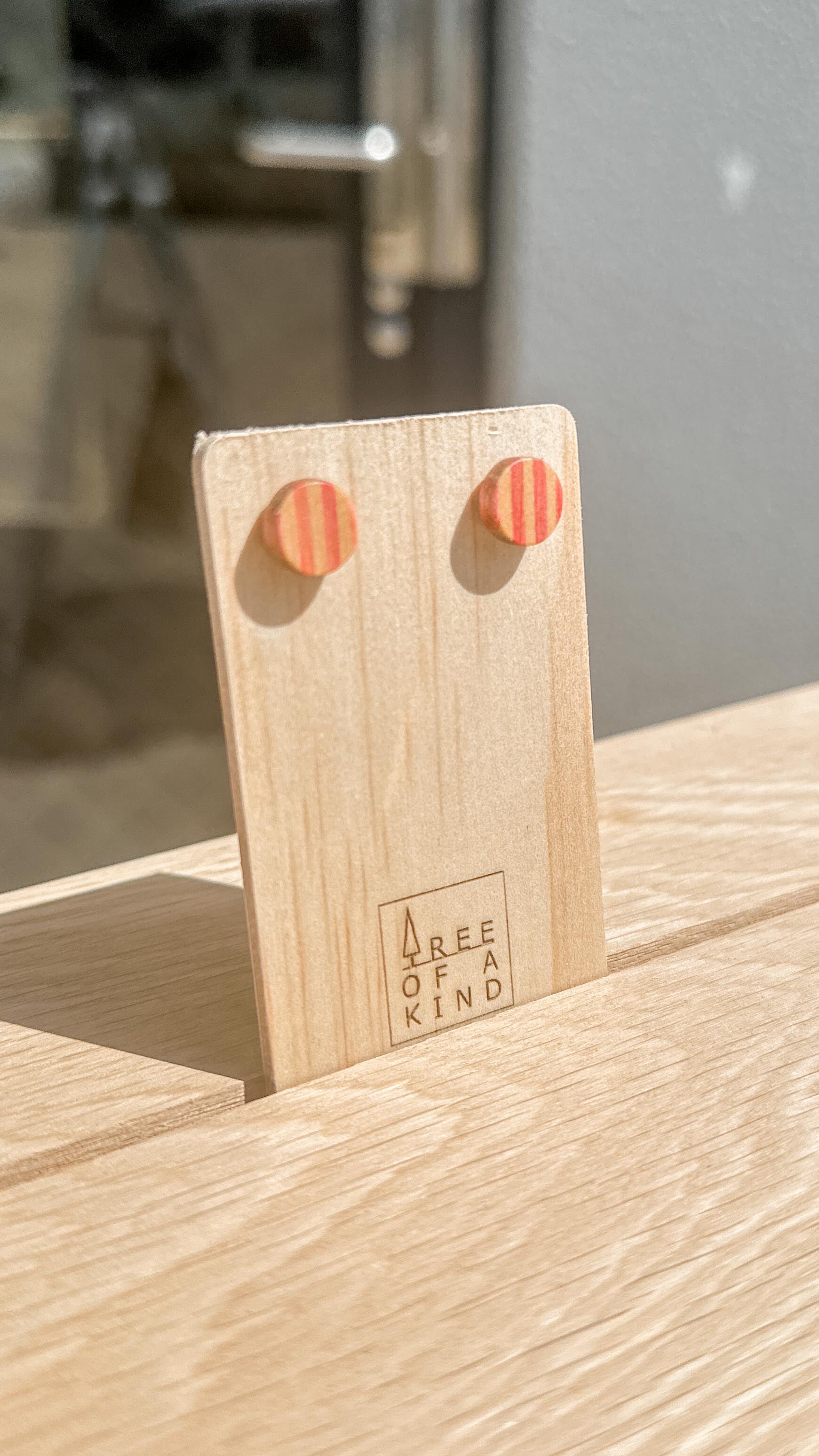 These colourful Circle Stud Timer Earrings have all the bells and whistles you need to make a bold statement. Hand dyed birch and the natural shimmer in the timber give it a unique style, while plant-based oil and high grade surgical steel fixings make it lasting and robust. Plus, it’s handmade with reclaimed timber — so you can look good and do good at the same time!